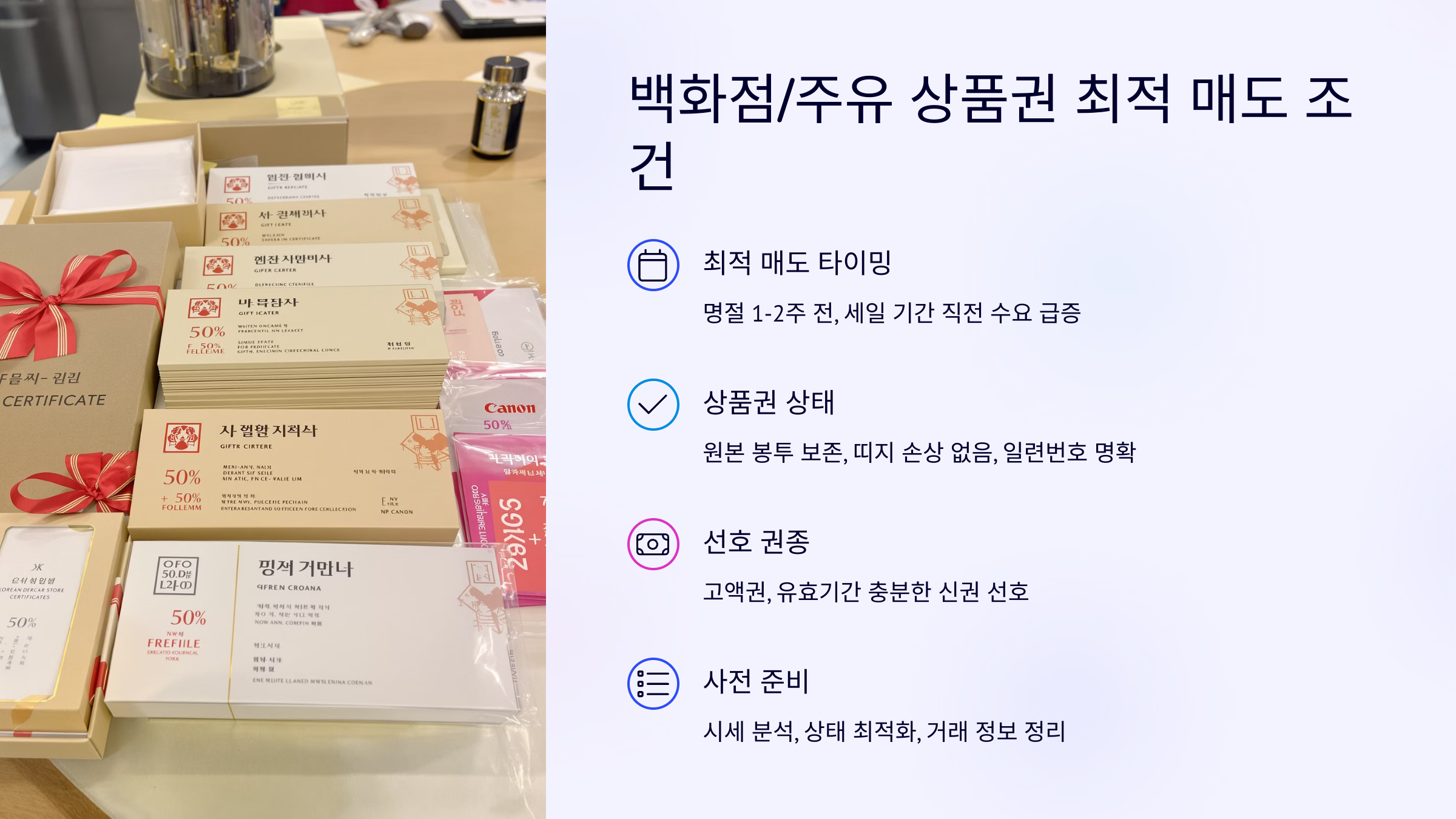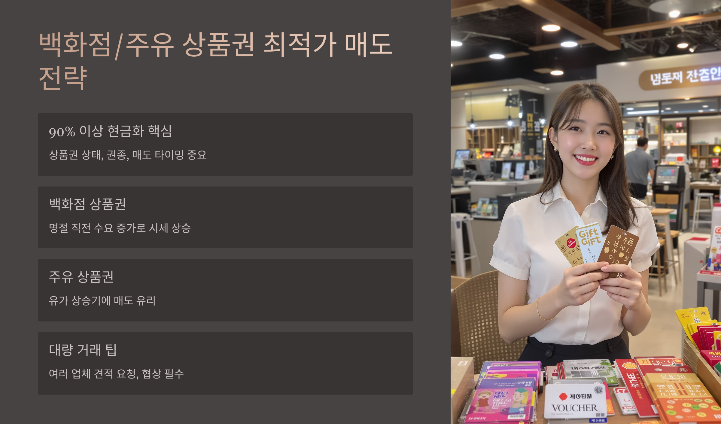 백화점/주유 상품권, 90% 이상 현금화를 위한 전문가급 매도 타이밍과 조건 분석