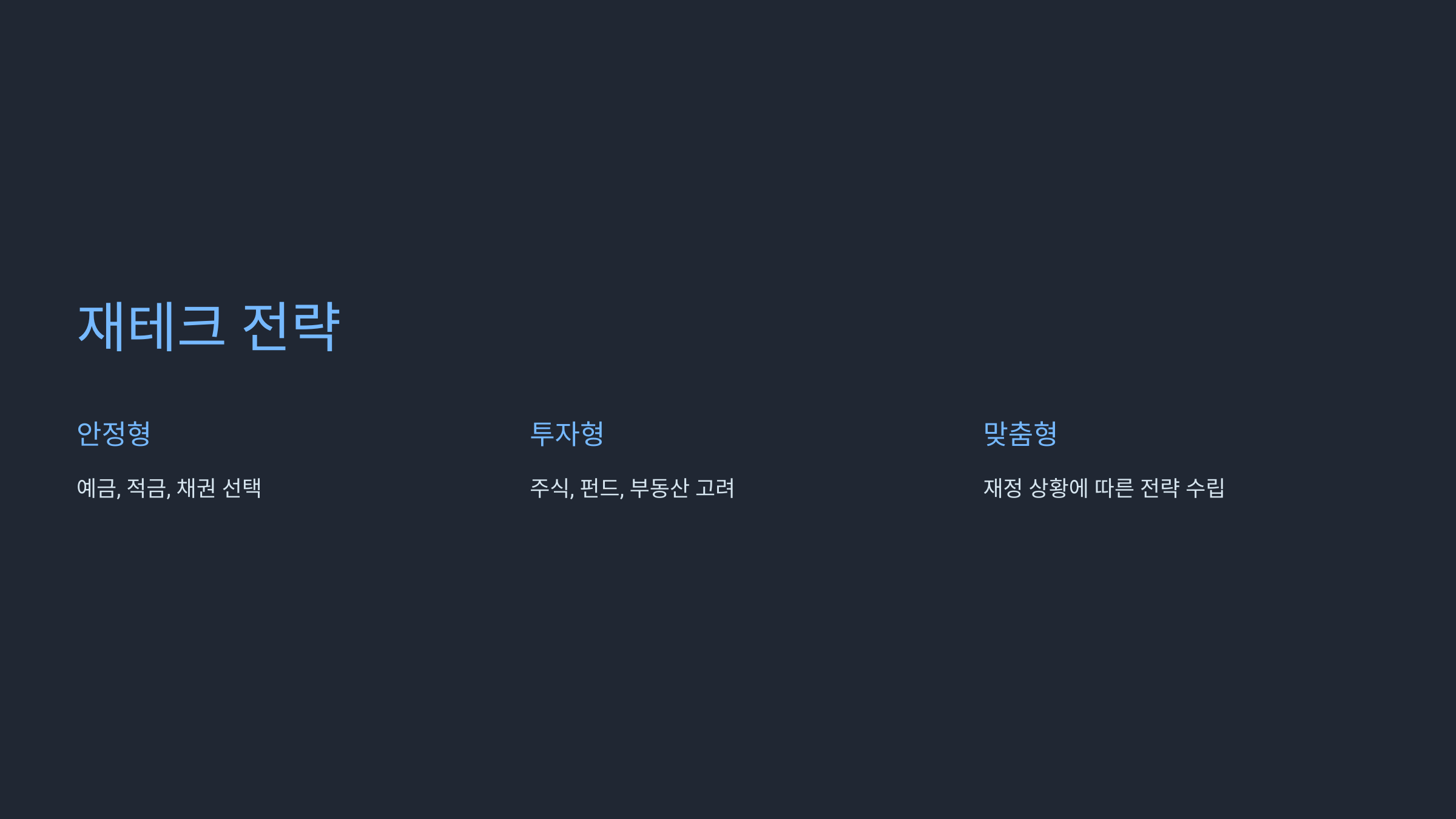 - 전문가 상담: 재무 설계 전문가 상담을 통해 맞춤형 재테크 전략 수립