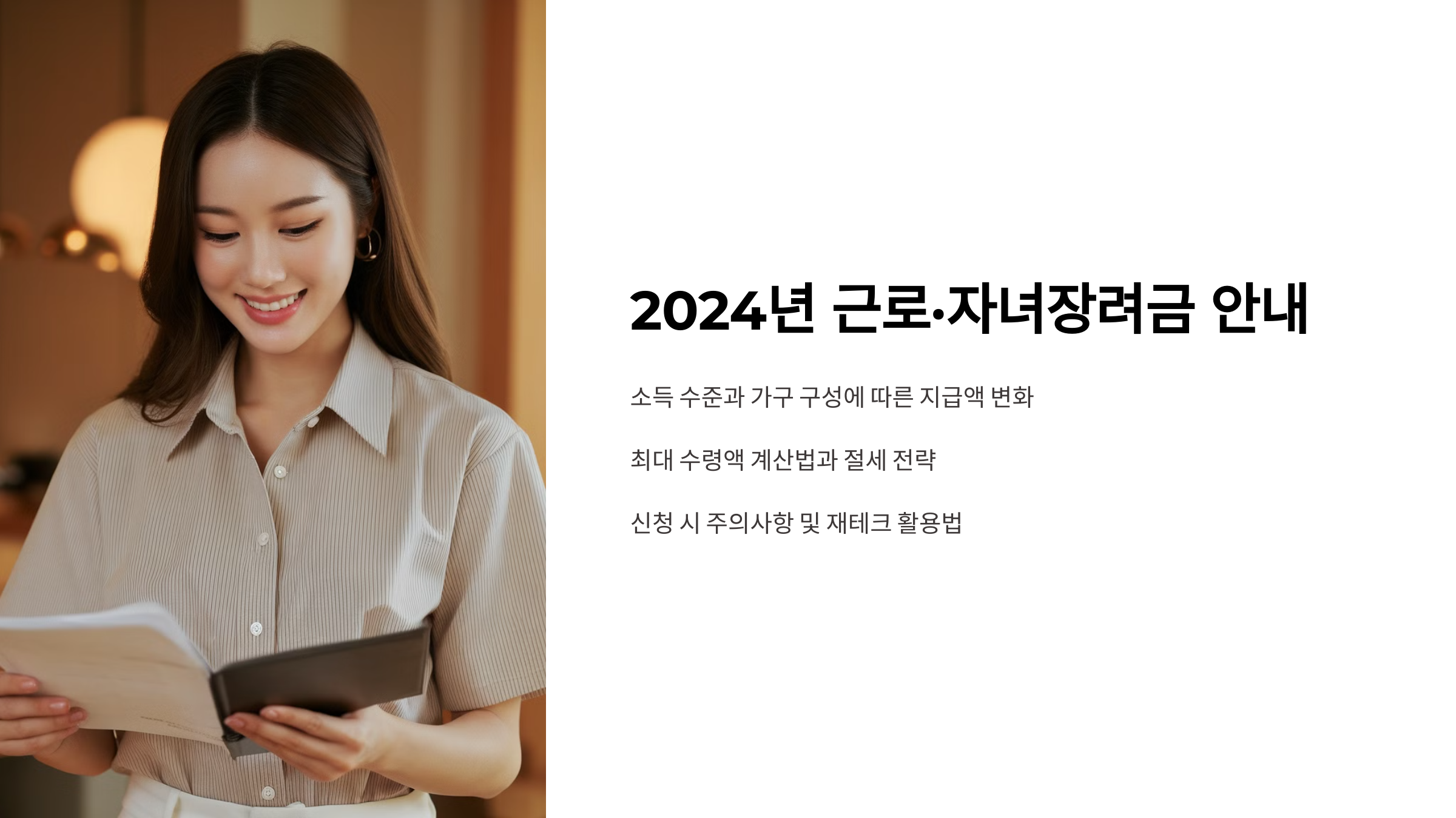 근로·자녀장려금 신청 2024 지급일 및 수령액에 대한 모든 것을 알아보고, 최대 수령액을 위한 전략을 세워보세요. 이 글에서는 복잡한 세법 조항을 쉽게 풀어 설명하고, 여러분의 경제적 이익을 극대화하는 데 필요한 실질적인 정보를 제공합니다. 2024년 변경된 사항과 함께 지급일, 수령액 계산 방법, 절세 전략까지 상세히 안내하여, 우리나라 납세자 여러분의 권익을 보호하고 자산 증식에 실질적인 도움을 드리고자 합니다.
