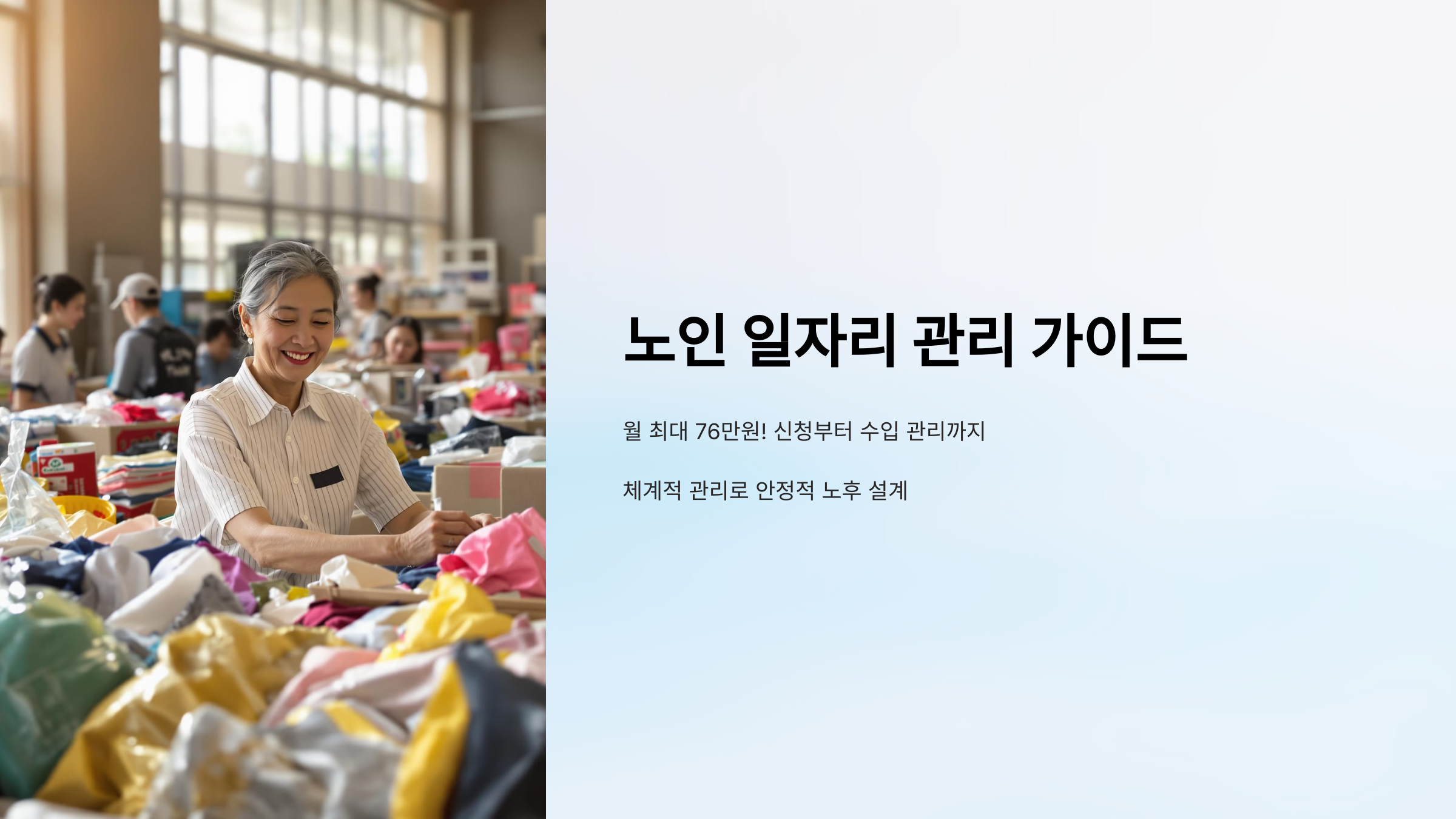노인 일자리, 월 최대 76만원! 신청부터 수입 관리까지. 노인 일자리, 단순한 참여를 넘어 체계적인 관리와 활용이 필요합니다. 이 글에서는 노인 일자리 신청 절차부터 수입 관리 방법, 그리고 노후 자산 증식 노하우까지, 노인 일자리의 전 과정을 전문가적 시각으로 안내합니다. 노인 일자리를 통해 안정적인 노후를 설계하세요!