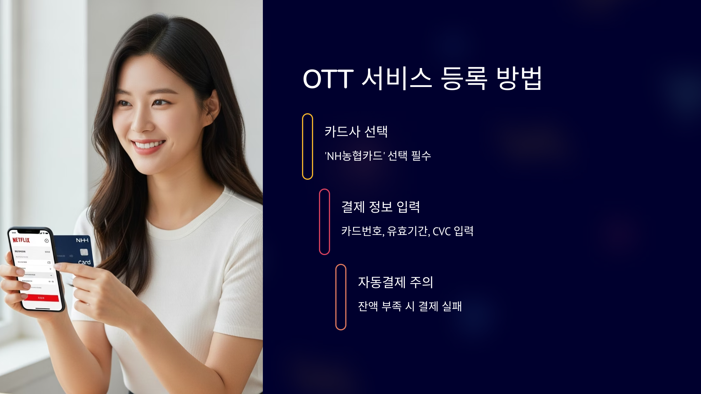 본격적으로 OTT 서비스에 카드를 등록하기 전에, 몇 가지 사항을 미리 확인하고 준비하면 결제 실패를 99% 막을 수 있습니다. 이 단계는 매우 중요하므로 반드시 꼼꼼히 확인하시기 바랍니다. 특히 NH농협카드의 온라인 결제 서비스를 사전에 등록하는 것이 핵심입니다.