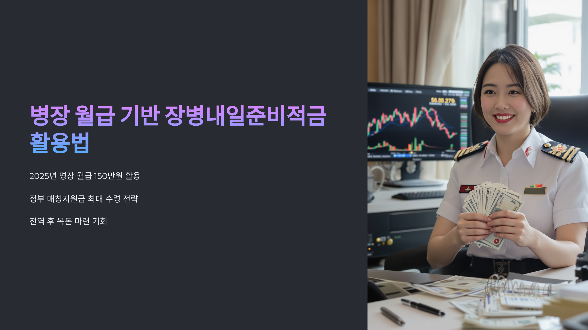 2025년 대폭 인상된 병장 월급 150만원은 장병내일준비적금과 연계될 때 그 효과가 극대화됩니다. 단순히 월급을 아껴 쓰는 것을 넘어, 이 제도를 전략적으로 활용하는 것이 전역 시 목돈 마련의 핵심입니다. 장병내일준비적금은 월 최대 40만원까지 납입 가능하며, 정부가 납입액의 일정 비율(2025년 기준, 최대 100% 이상으로 증액될 수 있음)을 추가로 지원해주는 파격적인 금융 상품입니다.