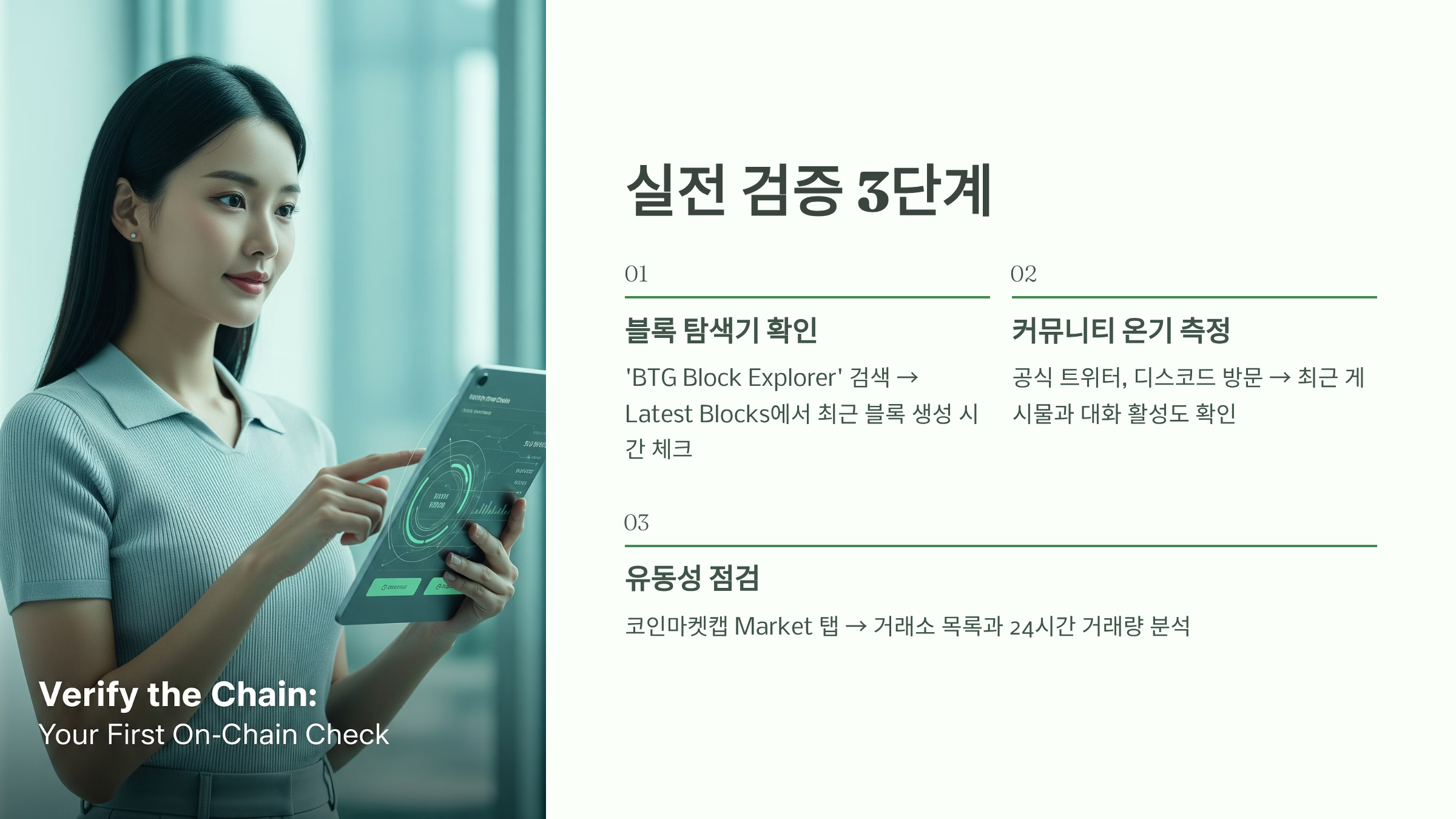 이제 직접 비트코인 골드가 '좀비 코인'으로 살아있는지 확인해 볼 차례입니다. 이 과정은 다른 어떤 프로젝트에도 적용할 수 있는 여러분만의 무기가 될 것입니다.