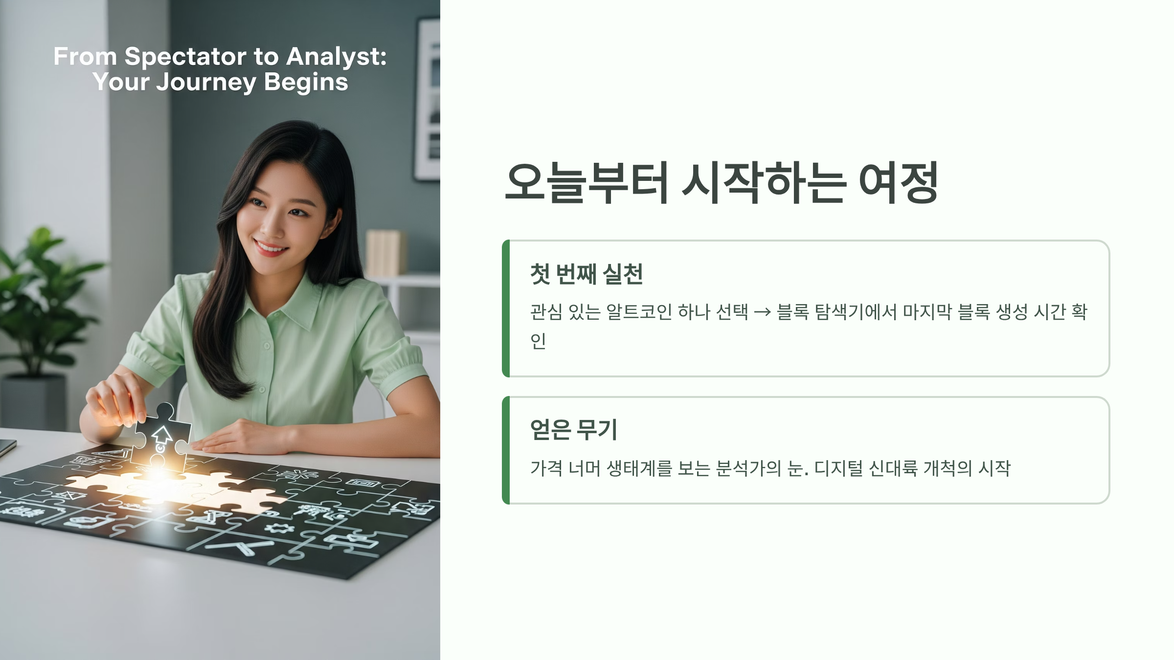 여러분은 오늘 비트코인 골드라는 퍼즐 조각을 맞추며, 단순히 하나의 코인에 대한 지식을 얻은 것이 아닙니다. 가격과 거래소라는 껍데기 너머에 있는 프로토콜의 본질과 생태계의 활력을 직접 들여다보는 분석가의 눈을 얻었습니다. 이 능력은 여러분이 앞으로 마주할 수많은 프로젝트들 사이에서 옥석을 가려내고, 디지털 신대륙에서 자신만의 길을 개척하는 데 가장 강력한 무기가 되어줄 것입니다.
