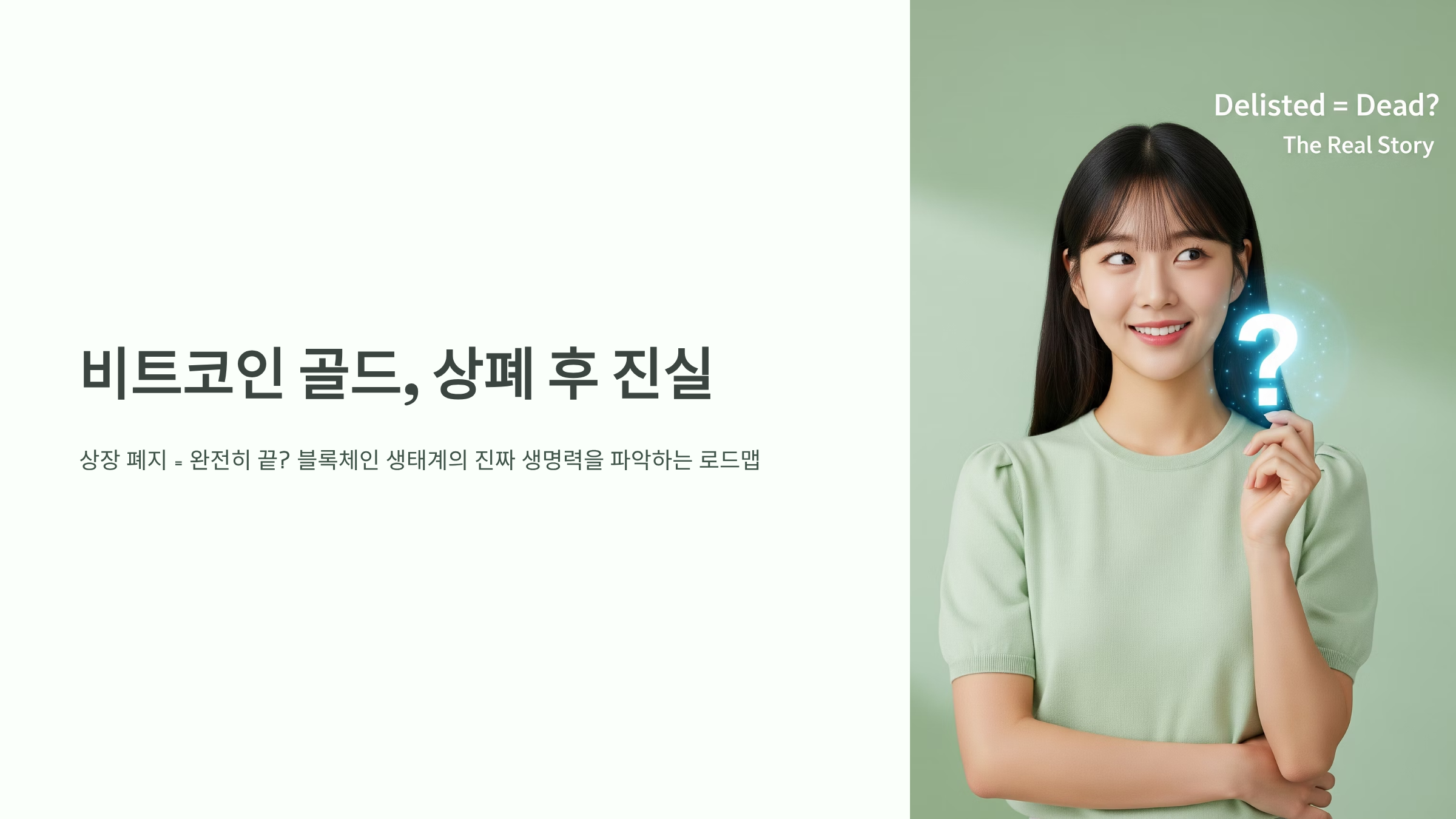 이 글은 단순한 코인 소개가 아닙니다. '비트코인 골드'라는 흥미로운 사례를 통해, 상장 폐지라는 현상 뒤에 숨겨진 블록체인 프로토콜의 진짜 생명력을 파악하는 로드맵을 제시합니다. 이 글을 끝까지 읽는다면, 여러분은 남들이 '죽었다'고 말하는 프로젝트의 생사를 스스로 판별하고, 더 깊은 차원에서 시장을 분석하는 투자자로 레벨업하게 될 것입니다.