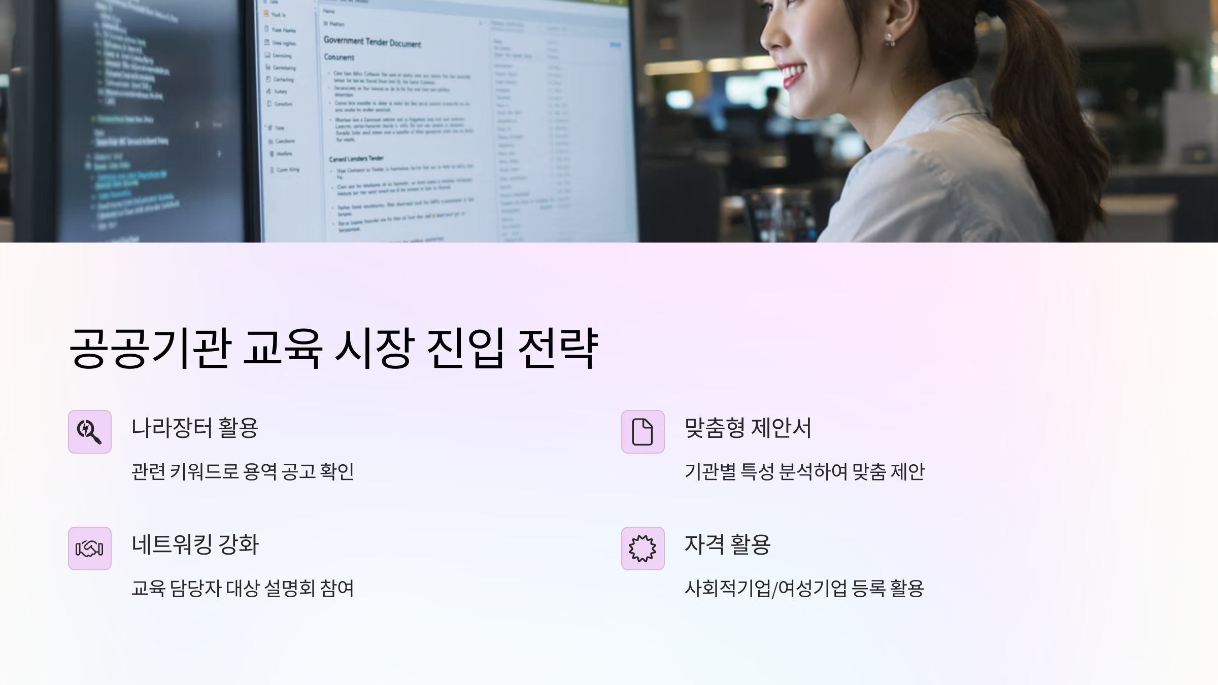 공공기관 교육 계약 성공을 위한 세부 전략은 다음과 같습니다.