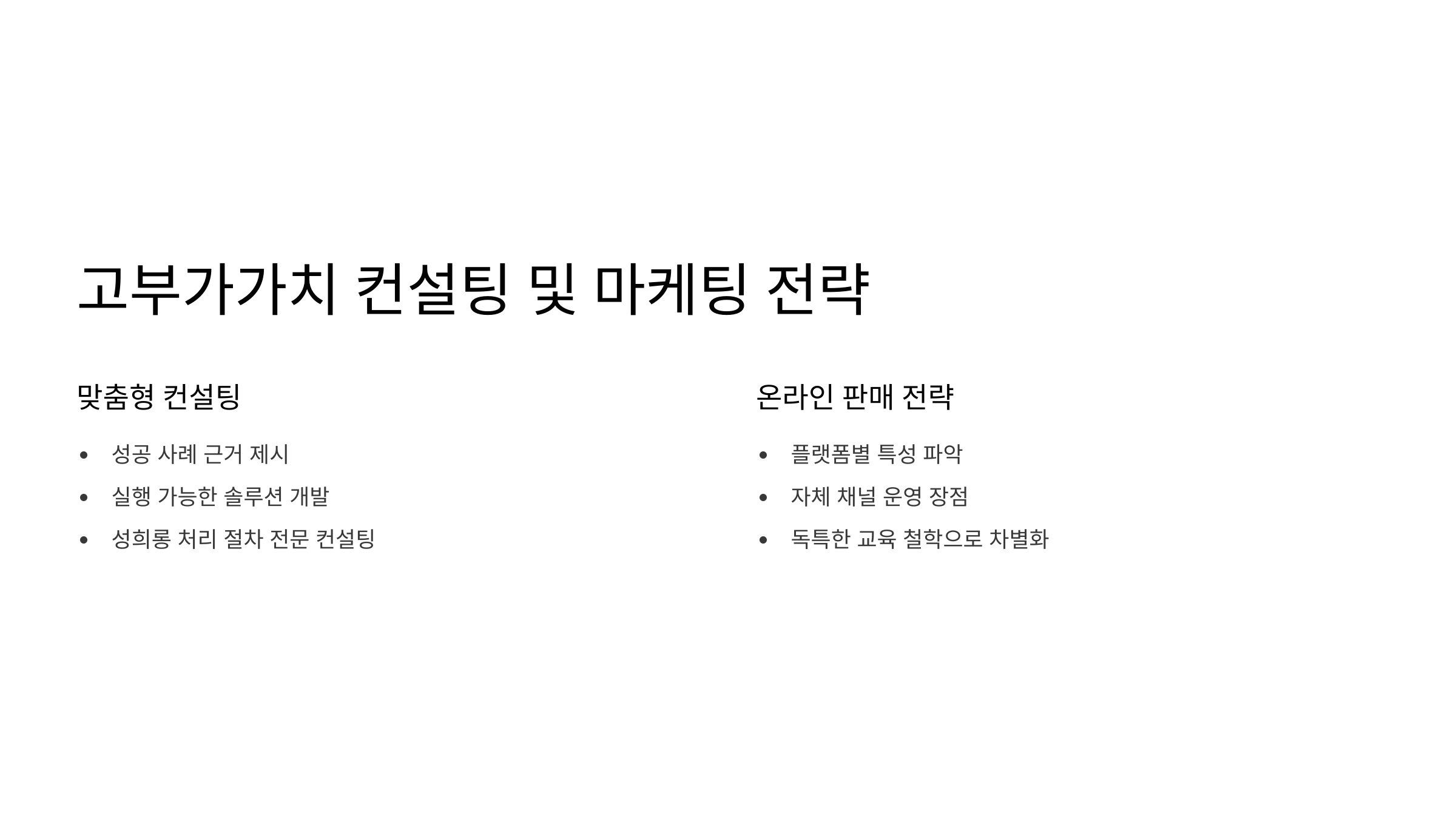 고부가가치 맞춤형 컨설팅 상품 개발 및 수주 전략