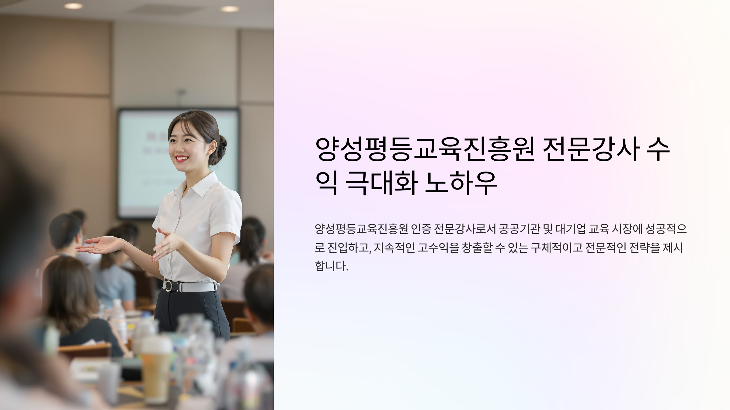 양성평등교육진흥원 전문강사, 대기업 교육 시장 공략 및 고수익 창출 비법