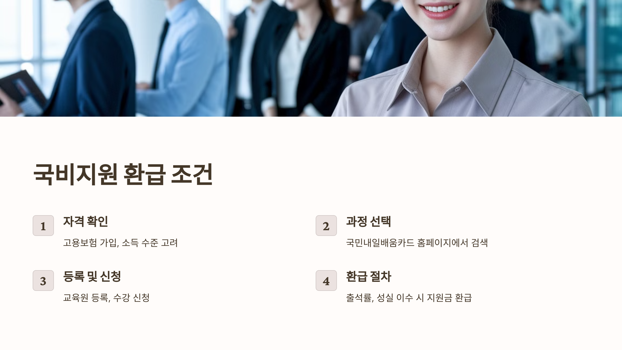 | 국비지원 환급 | 국민내일배움카드 | 고용보험 가입, 소득 조건 충족 필요 |