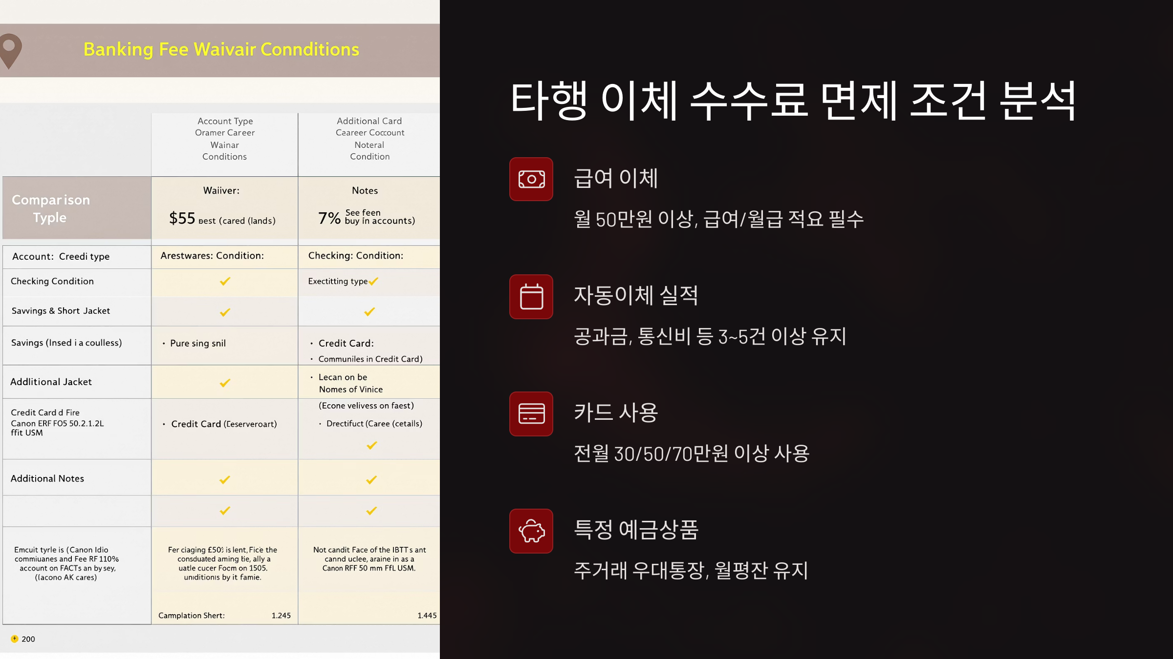 | 급여 이체 | 월 50만 원 이상, 지정일 입금 | 월 10~30회 또는 전액 면제 | 급여 이체일 및 문구 정확성 확인, 회사 담당자에게 요청 |