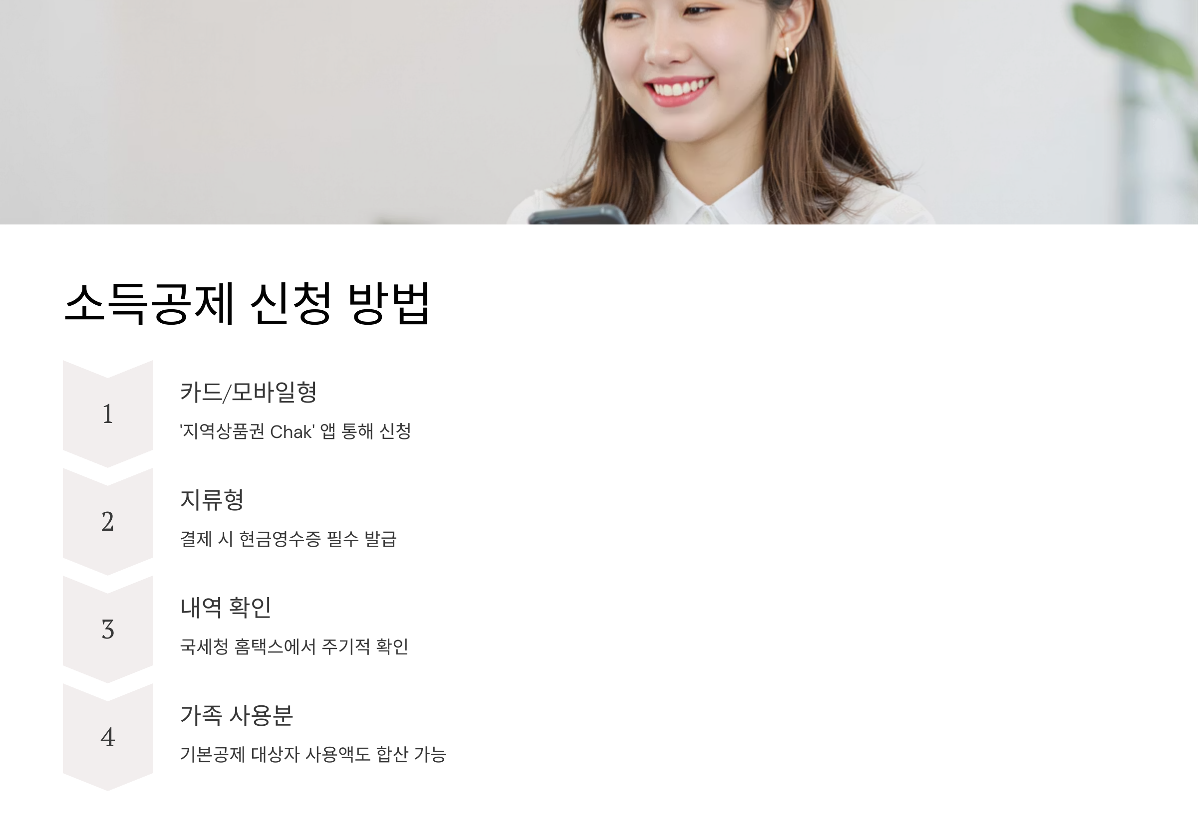 원주사랑상품권의 소득공제 혜택을 누락 없이 받기 위해서는 올바른 신청 절차와 증빙 방법 숙지가 필수적입니다. 사용 형태에 따라 약간의 차이가 있으므로 주의 깊게 살펴보아야 합니다.