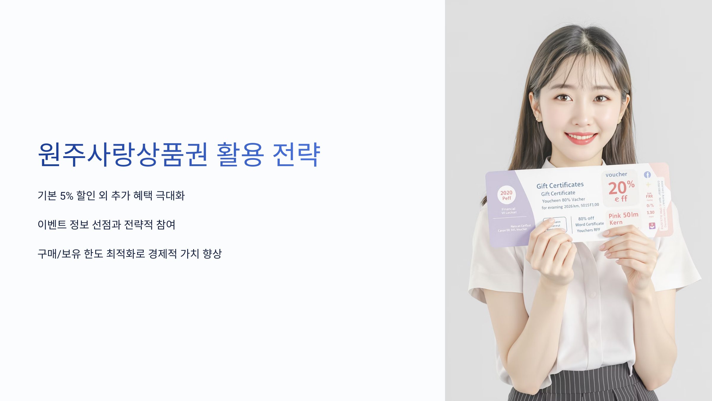 다음은 이벤트 활용 및 한도 최적화를 통해 원주사랑상품권 혜택을 극대화하는 전략입니다.