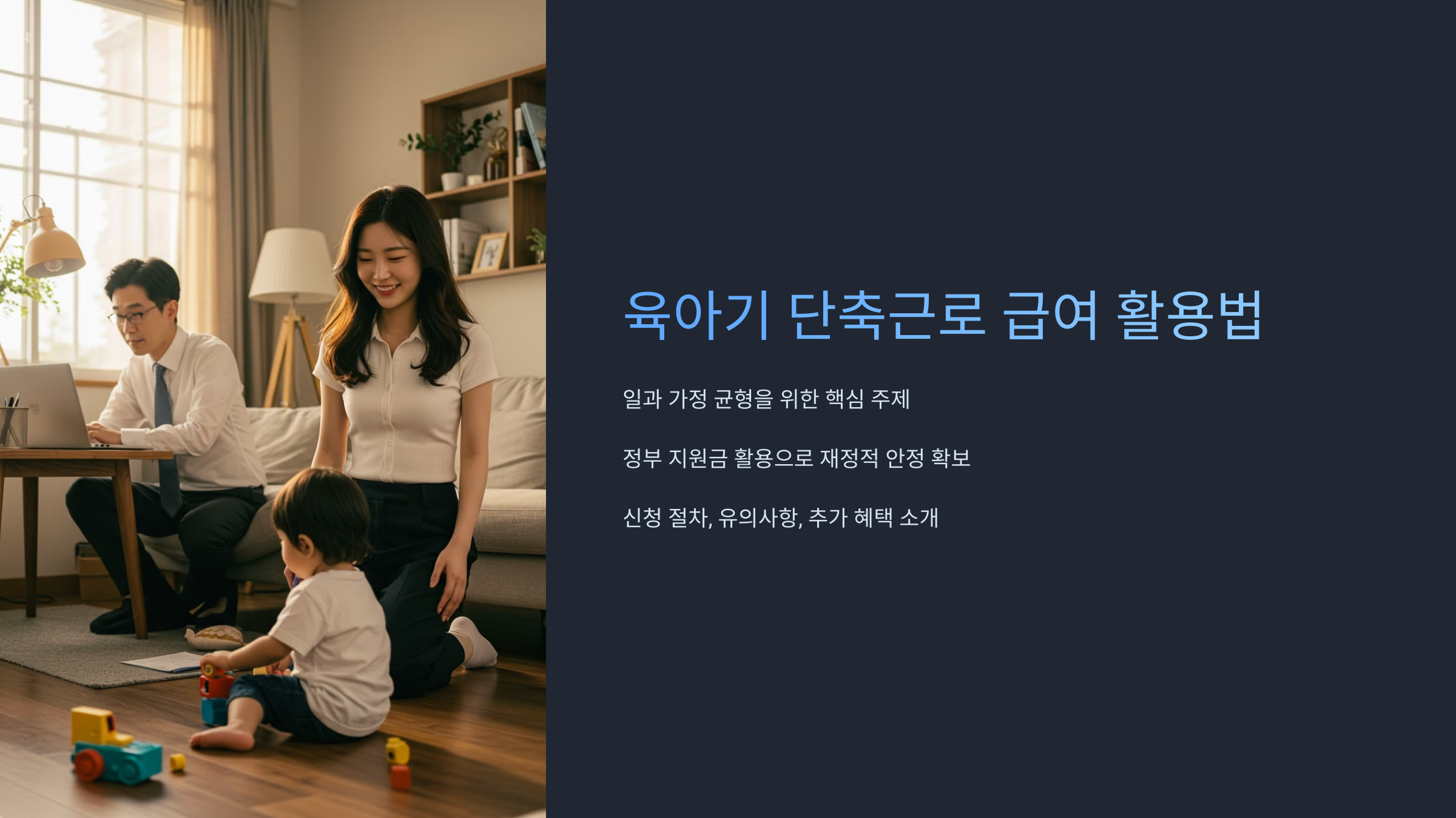 육아기 단축근로 급여 계산 방법은 복잡해 보일 수 있지만, 몇 가지 핵심 요소만 이해하면 정확하게 계산할 수 있습니다. 이 글에서는 육아기 단축근로 시 급여가 어떻게 산정되는지, 정부 지원금은 어떻게 받을 수 있는지, 그리고 실수령액을 극대화하기 위한 실질적인 팁까지 상세하게 제공하여 여러분의 재정적 안정에 도움이 될 수 있도록 하겠습니다.