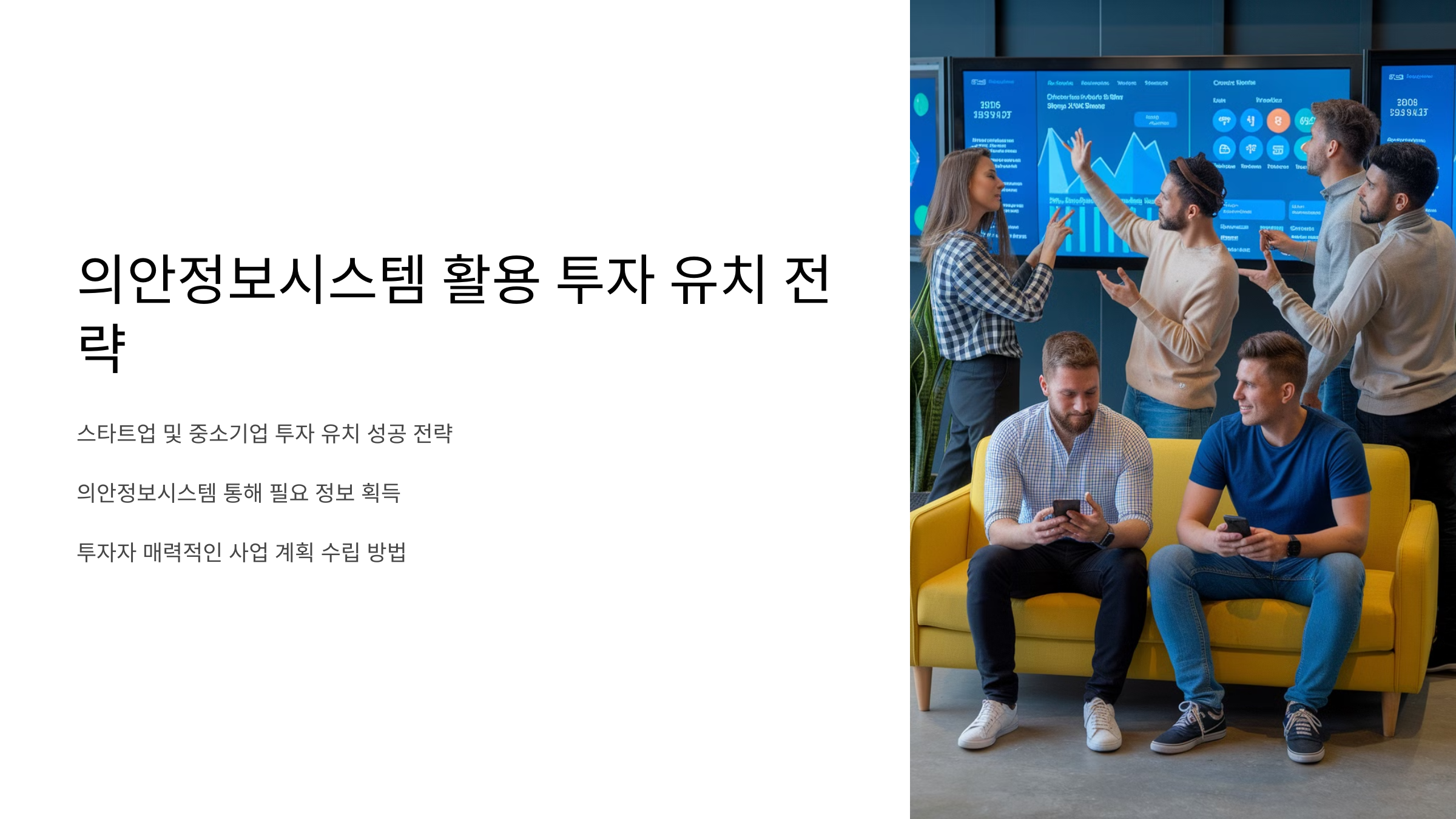 의안정보시스템 활용, 투자 유치 성공 전략은 스타트업 및 중소기업에게 매우 중요한 과제입니다. 이 글에서는 의안정보시스템을 통해 투자 유치에 필요한 정보를 얻고, 투자자에게 매력적인 사업 계획을 수립하는 방법에 대한 구체적인 전략을 제시합니다.