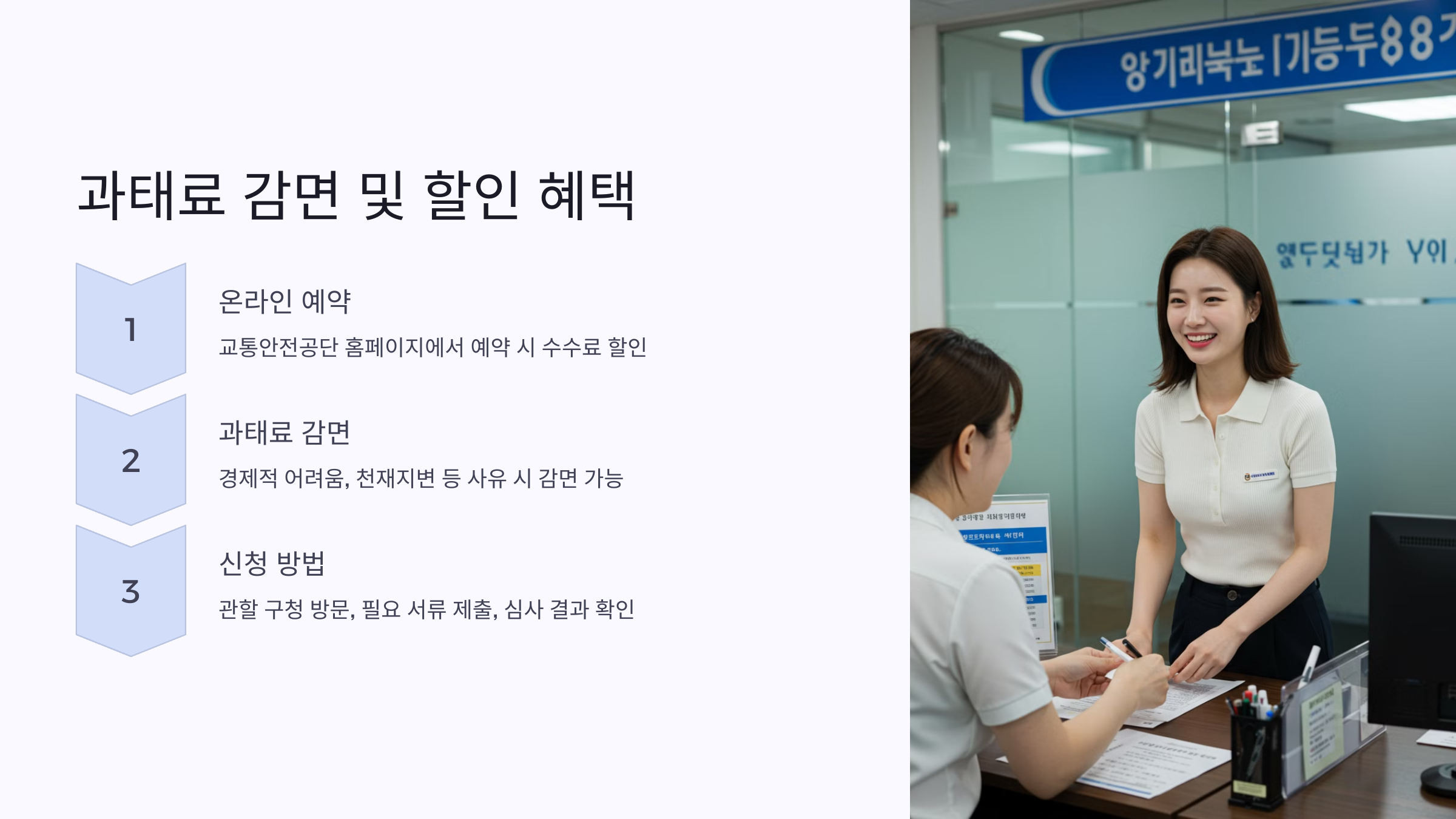 만약 피치 못할 사정으로 검사 기간 내에 검사를 받지 못할 경우, 몇 가지 구제 방법이 있습니다. 예를 들어, 해외 출장이나 입원 등의 사유로 검사를 받지 못했다면, 증빙서류를 첨부하여 과태료 면제 신청을 할 수 있습니다.