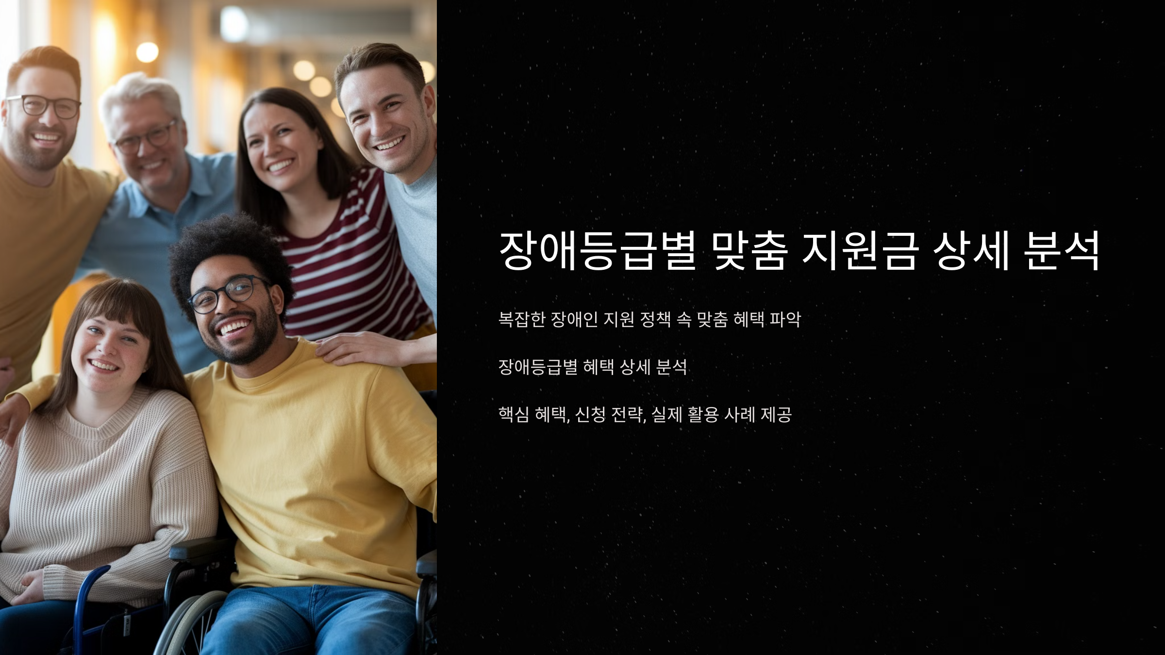 장애등급별 맞춤 지원금 상세 분석: 놓치지 말아야 할 핵심 혜택은 복잡한 장애인 지원 정책 속에서 자신에게 맞는 혜택을 제대로 파악하고 활용할 수 있도록 돕는 것을 목표로 합니다. 이 글에서는 장애등급별 혜택을 상세히 분석하여, 놓치기 쉬운 핵심 혜택과 신청 전략, 실제 활용 사례까지, 독자 여러분에게 실질적인 도움이 될 정보를 제공합니다.
