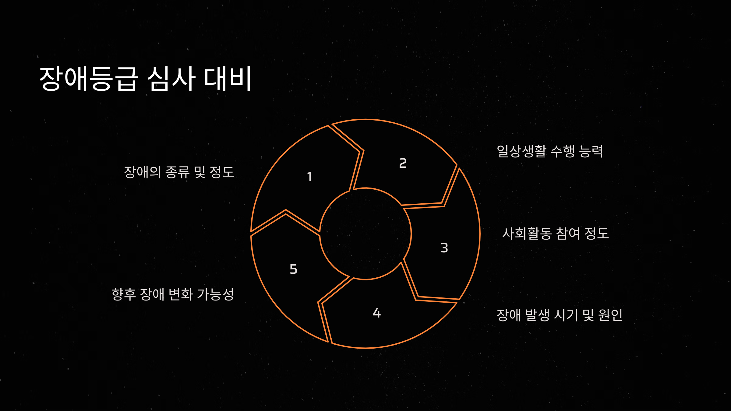 다음은 장애등급 심사 과정에서 주요 평가 항목입니다.