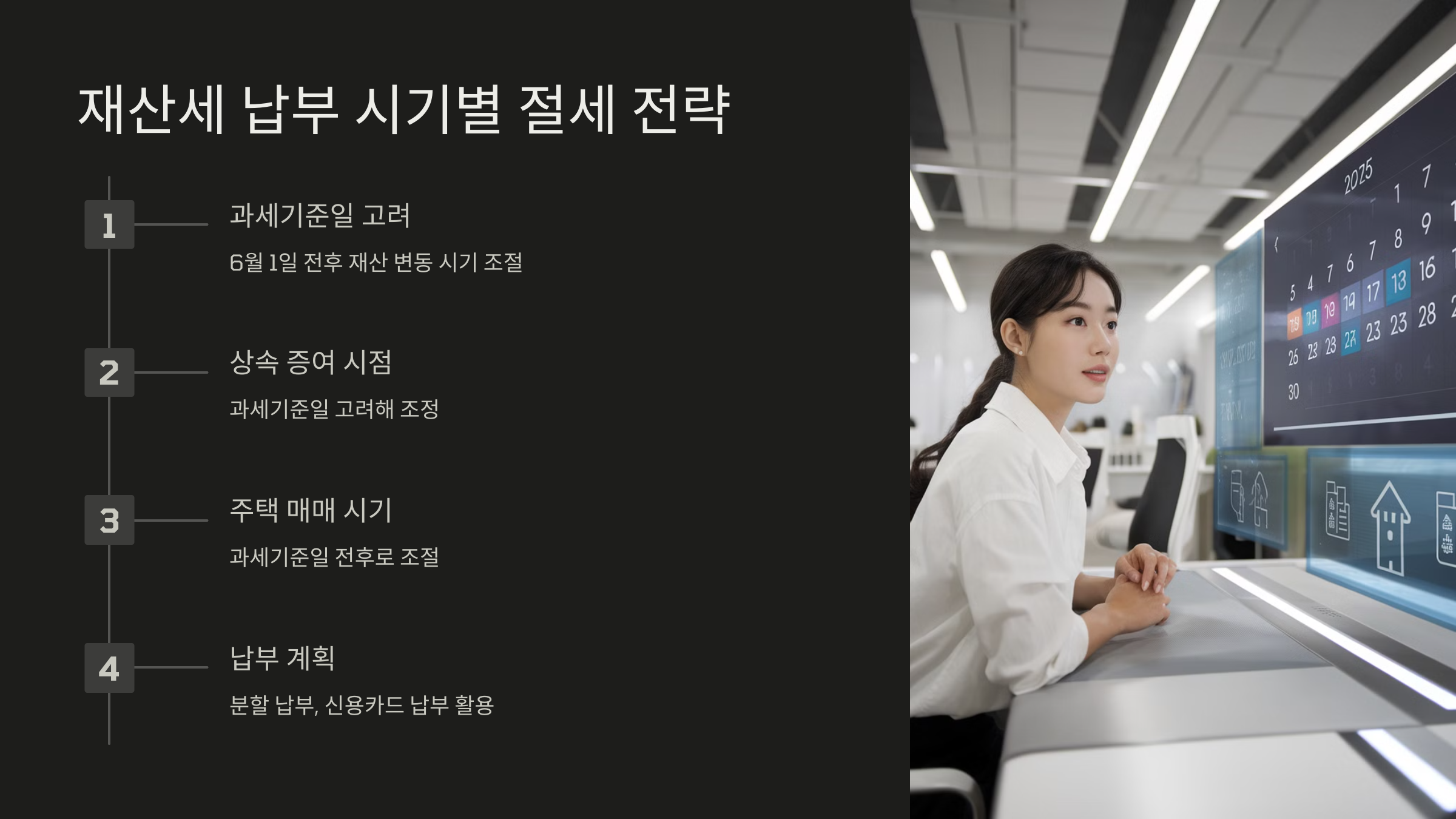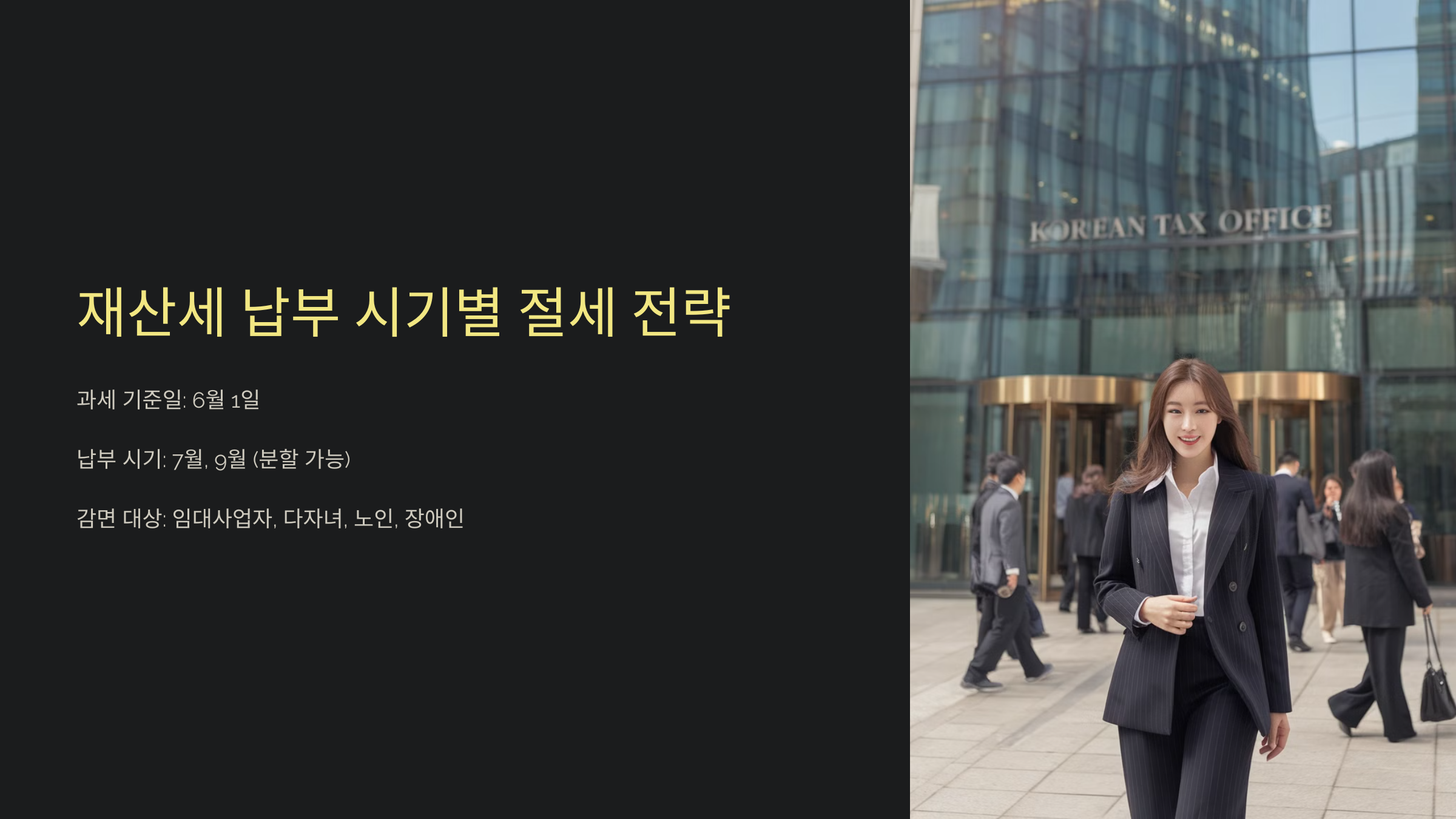 납부 시기를 활용한 재산세 절세 전략은 다음과 같습니다.