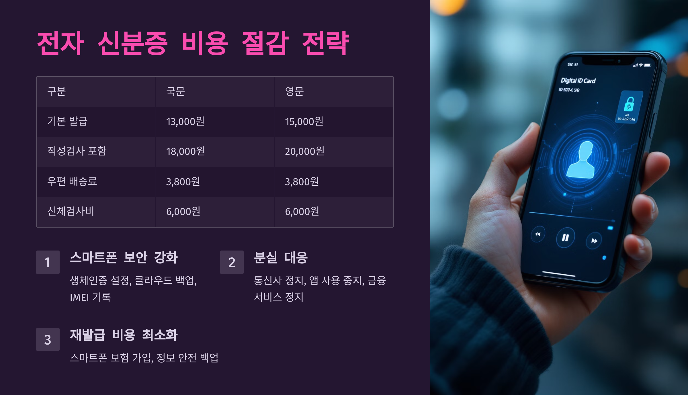비용 절감을 위한 구체적인 방안으로는, 스마트폰 보험 가입을 고려할 수 있으며, 신분증 관련 정보를 안전하게 백업해두는 것이 중요합니다.