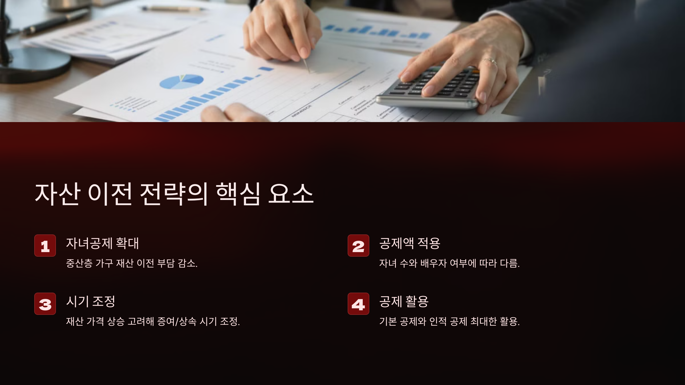 - 배우자 및 자녀와의 상속 및 증여 계획 수립