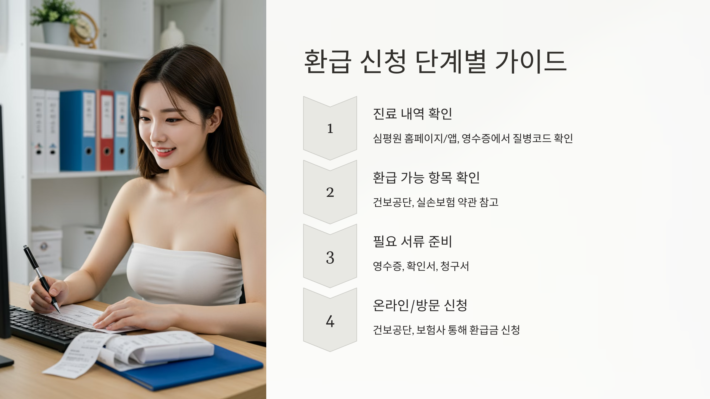 - 환급 가능 여부 확인: 진료 후 건강보험공단, 민간 보험사 등에서 제공하는 환급 제도 대상에 해당하는지 확인합니다.