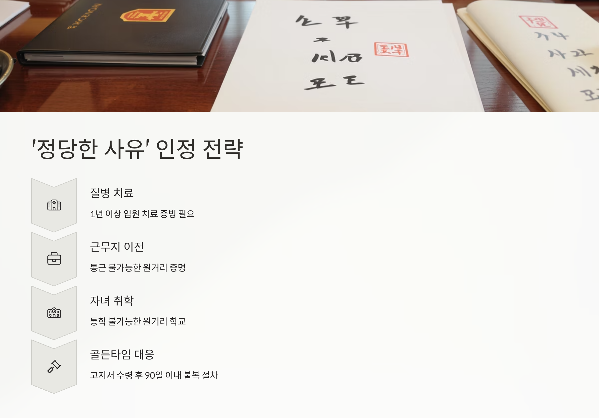 - 근무지 이전: 현재 거주하는 시·군 외의 다른 시·군으로 직장이 이전되거나 전직하는 경우입니다. 재직증명서, 발령 공문 등으로 입증해야 하며, 통상 수도권 내에서의 이동은 정당한 사유로 인정받기 어려울 수 있습니다.