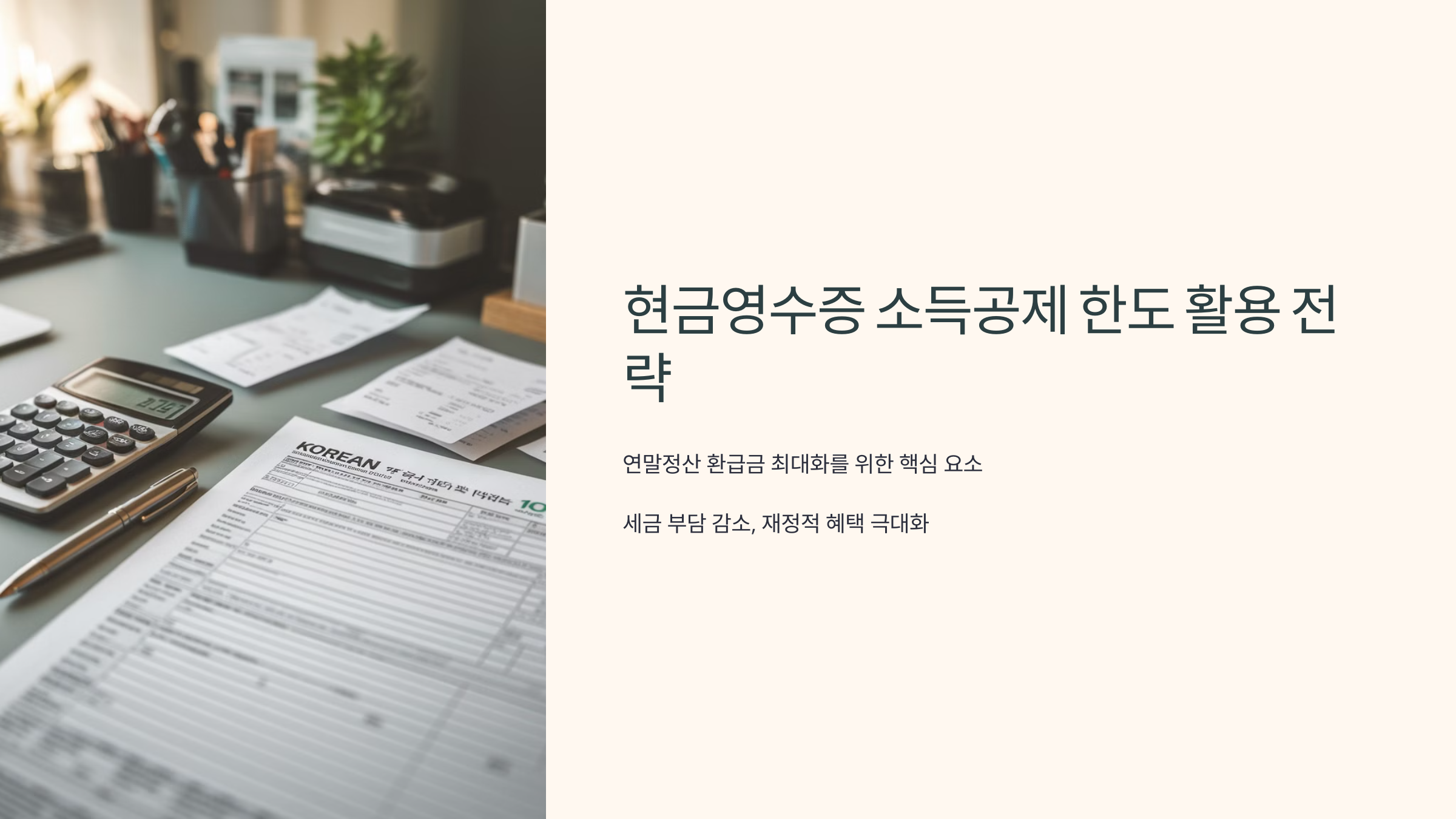 이러한 전략은 세금 부담을 줄이고, 공제 가능한 최대 금액을 확보하여 재정적 혜택을 극대화하는 방법을 제공합니다. 이 글에서는 현금영수증 소득공제 한도를 최대한 활용하기 위한 다양한 실전 팁을 제공합니다.