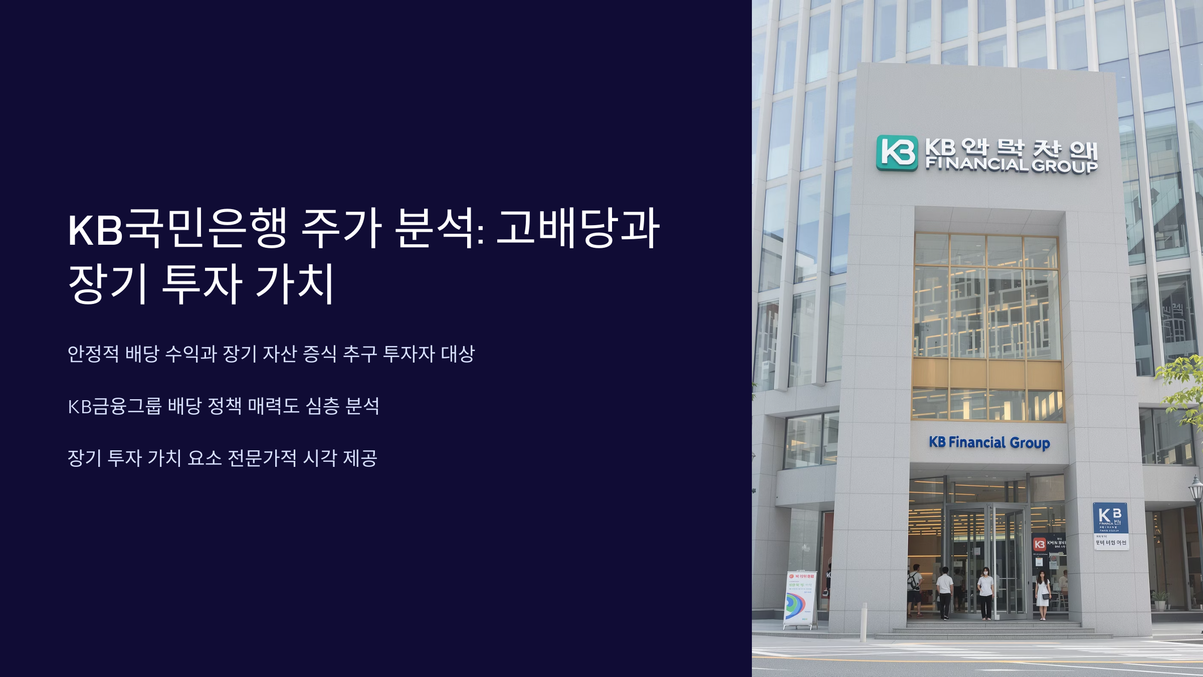 kb국민은행 주가, 고배당 매력과 장기 투자 가치 분석: 이 글은 kb국민은행 주가에 투자하는 투자자, 특히 안정적인 배당 수익과 장기적인 자산 증식을 동시에 추구하는 분들을 위해 작성되었습니다. KB금융그룹의 배당 정책 매력도를 과거 데이터와 성장성을 통해 심층 분석하고, 단순 재무 지표를 넘어선 장기 투자 가치 요소들을 전문가적 시각에서 조명하여 투자 판단의 질을 높이는 데 도움을 드리고자 합니다.