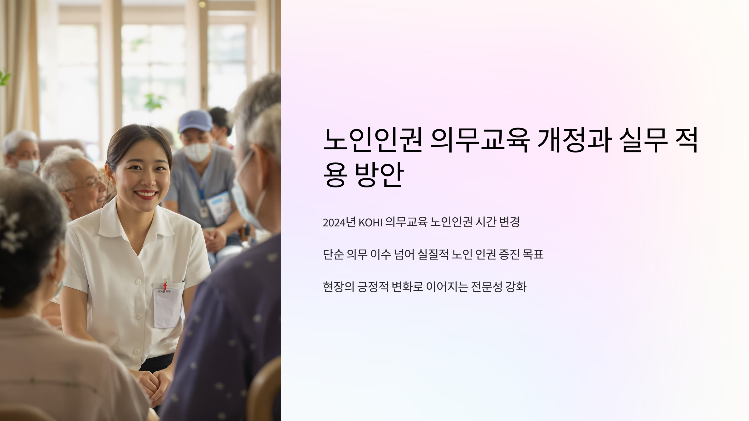 kohi 의무교육 노인인권 시간 변경 핵심: 2024년 개정 내용과 실무 적용 방안